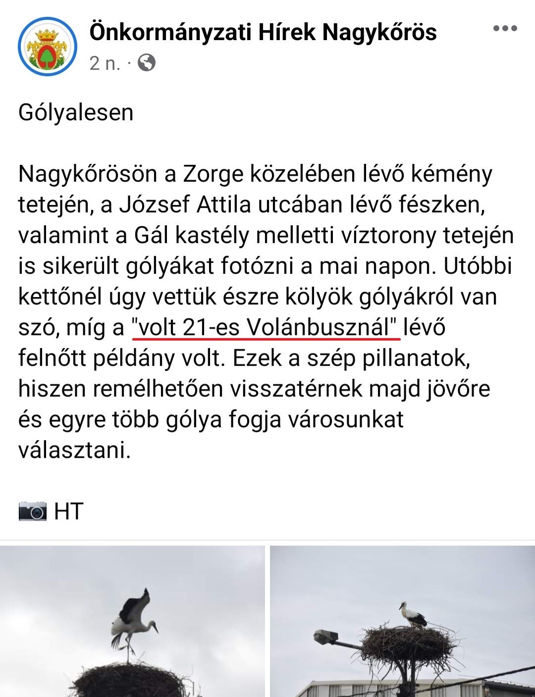 Ahogy most is, amikor HT boldogan közli a város nyilvánosságával, hogy gólyákra lelt – tessék figyelni! – a „volt 21-es Volánbusznál”! Azt, hogy Horváth össze-vissza irkál, már megszokhatták a nagykőrösiek, sőt – ahogy a július 9-i időközi önkormányzati választáson elszenvedett fideszes vereség is mutatja – már immunissá vált rá a választópolgárok többsége. Az viszont, hogy a polgármesteri hivatalban nem volt egy ember se, aki tájékoztatta volna Horváthot, hogy Nagykőrösön a 21-es Volán működött, ami nem azonos a Volánbusszal, még ha a neve hasonlít is, elgondolkodtató!