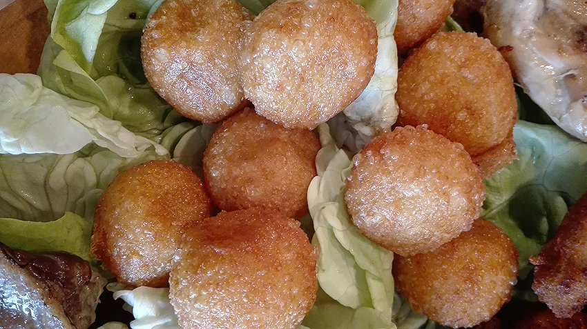 A sajtot lereszeljük, majd alaposan összegyúrjuk a liszttel, sóval és a tojással. Kisebb golyókat formázunk belőle és forró olajban kisütjük.